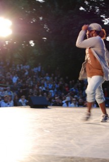 hiphop-event. Spontana rop och skratt från åskådarna som reste sig upp i