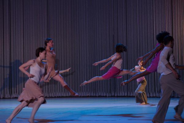 När lamporna i salongen släckts rullas en strålkastare längs med Jan Versweyvels halvcirkel av vertikala vita rep som utgör fonden till Anne Teresa De Keersmaekers verk Rain. Stycket visas i oktober på Cirque Royal i Bryssel med tio dansare på en rund scen och nästan dubbla antalet musiker från ensemblen Ictus som i orkesterdiket nedanför framför Steve Reich Music for 18 Musicians.