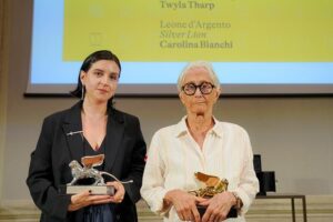 Koreografen Twyla Tharp betonade allt samfällt samarbete som ligger bakom dansen och vilket minutiöst arbete som ligger till grund för varje steg för att alla involverade ska nå fram till det gemensamma resultatet, när den hon igår mottog sitt Leone d’Oro alla carriera – ett Guldlejon för den samlade karriären vid den ceremoniella utdelningen på Ca’ Giustinian, Venedigbiennalens egna hempalats.